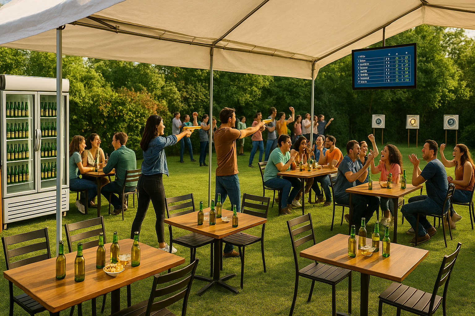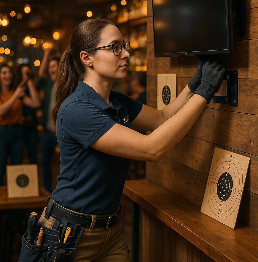 Recomendado colocarlo detrás de la barra, para que el staff entregue personalmente las pistolas a los jugadores y mantenga control del equipo.